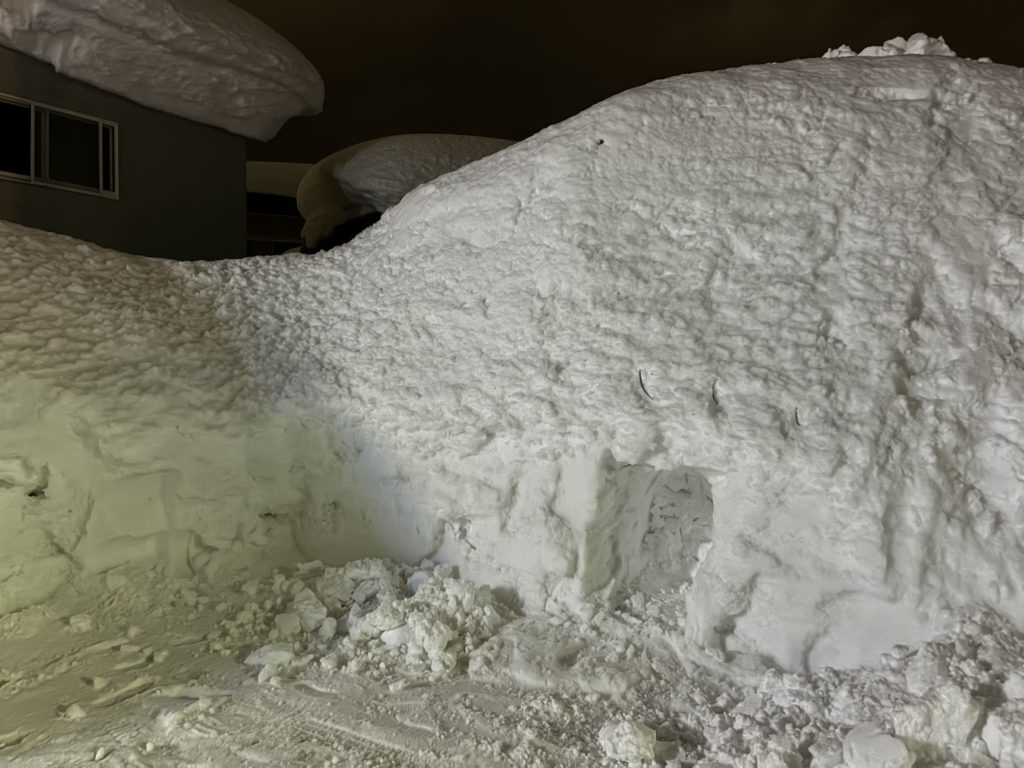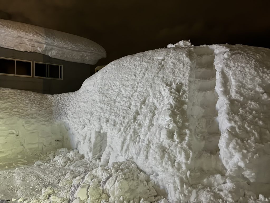 連日の除雪で、会社の雪捨て場はついに2階建てに匹敵する高さにまで成長しました。 ふと見ると、そこには誰が作ったのか立派な「階段」が……。