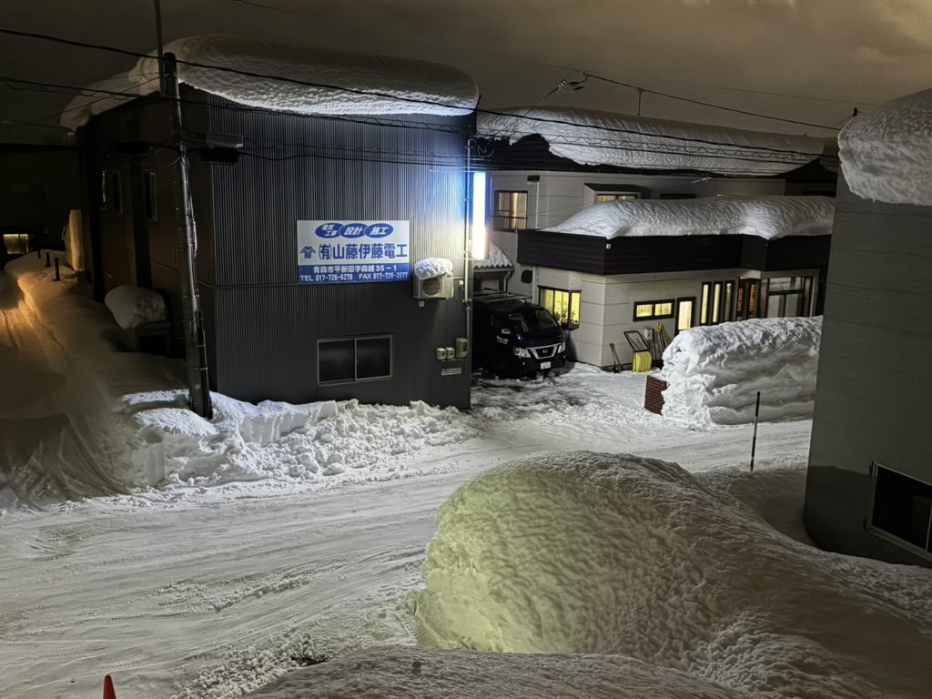 大人もついつい本気で遊んでしまう、冬の日の伊藤電工のひとコマです。